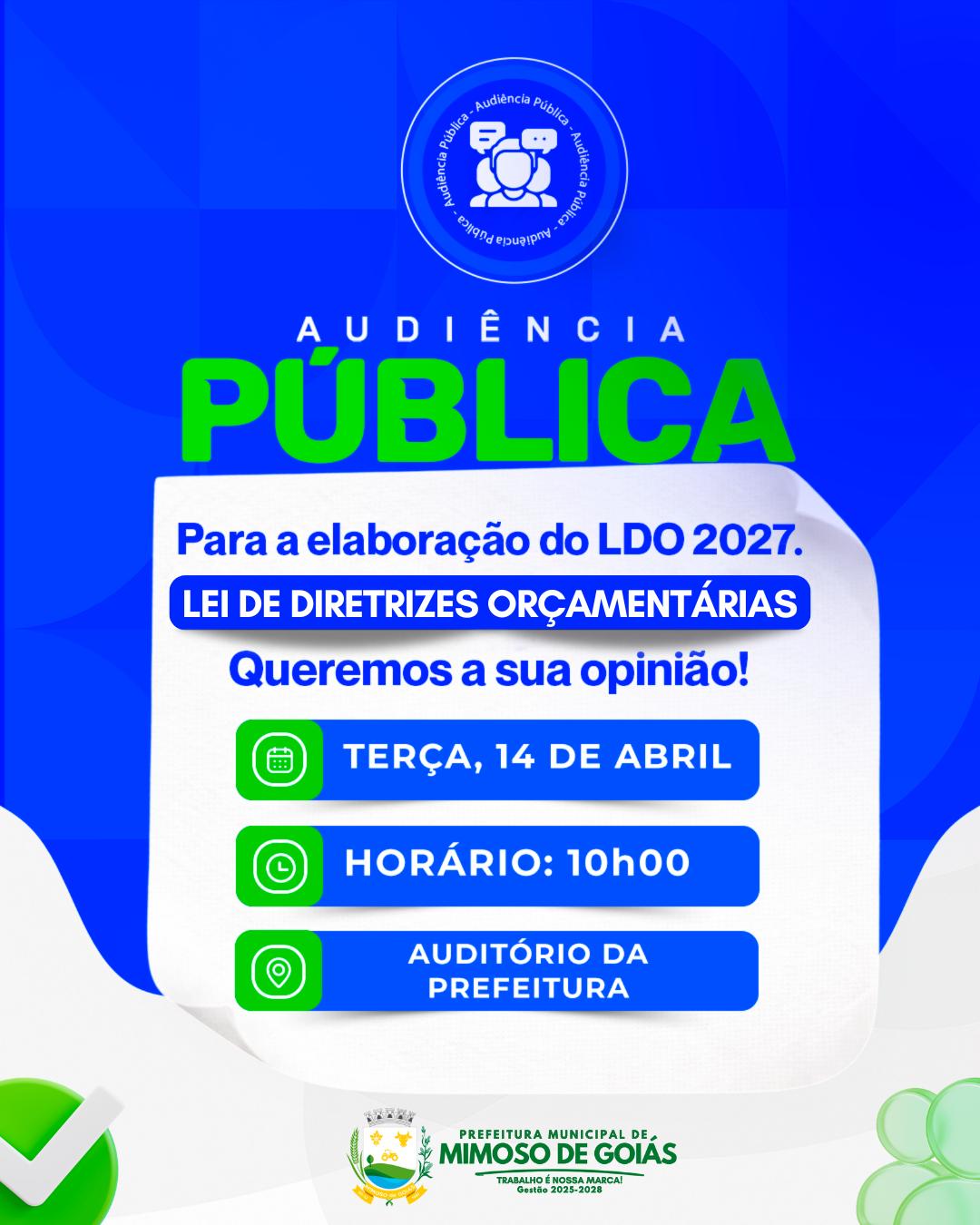 A Prefeitura de Mimoso de Goiás segue promovendo ações para incentivar a participação da população na construção do planejamento público municipal. Como reforça a divulgação da Audiência Pública para a elaboração da Lei de Diretrizes Orçamentárias…
